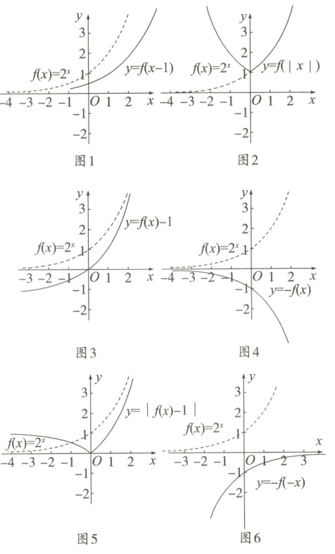 例2 利用指数函数 $ y = f ( x ) = 2 ^ { x } $ 的图象,作出下列各函数的图象: