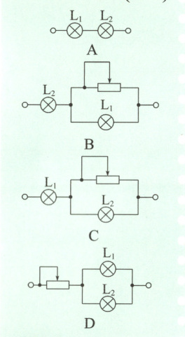 额定电压都是110 V,额定功率分别为$P_1 = 100 W$、$P_2 = 40 W$的灯泡$L_1$、$L_2$,接在电压为220 V的电路上,两盏灯泡均能正常发光,且消耗功率最小的电路是(