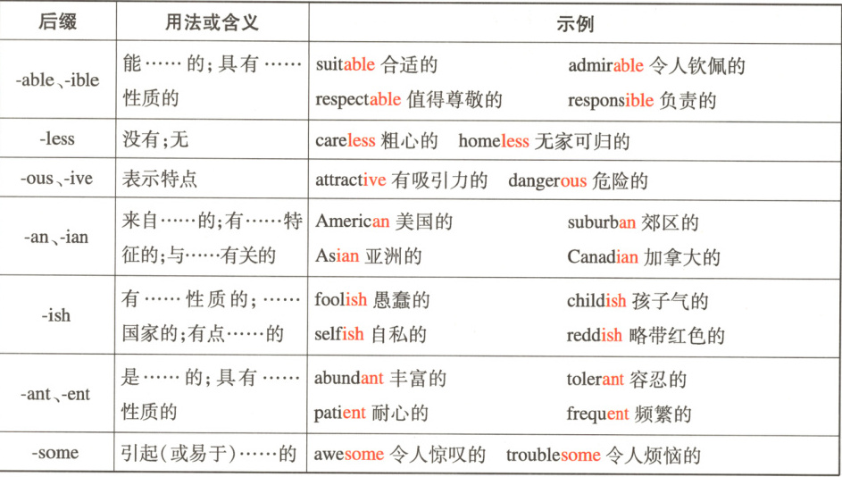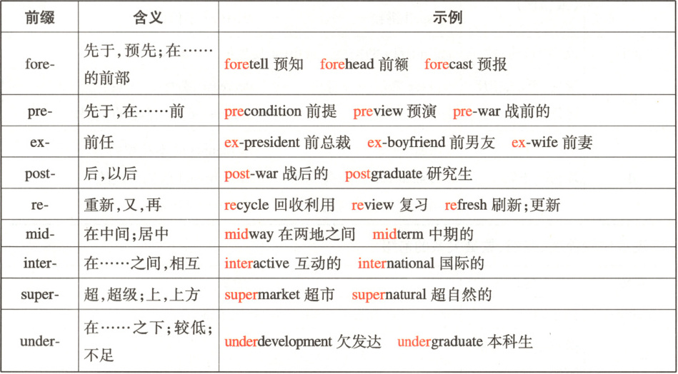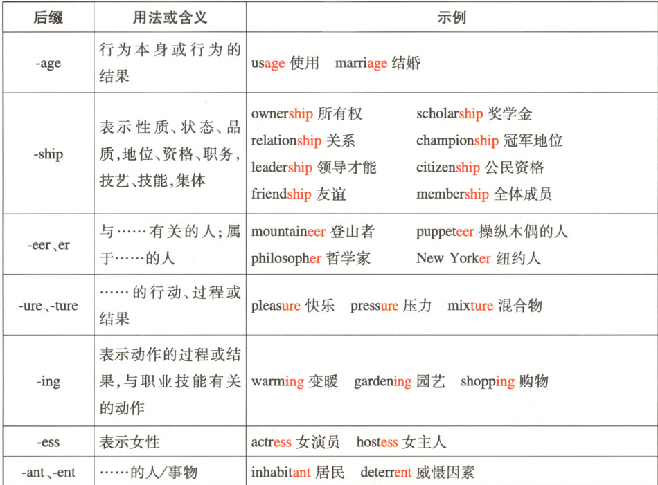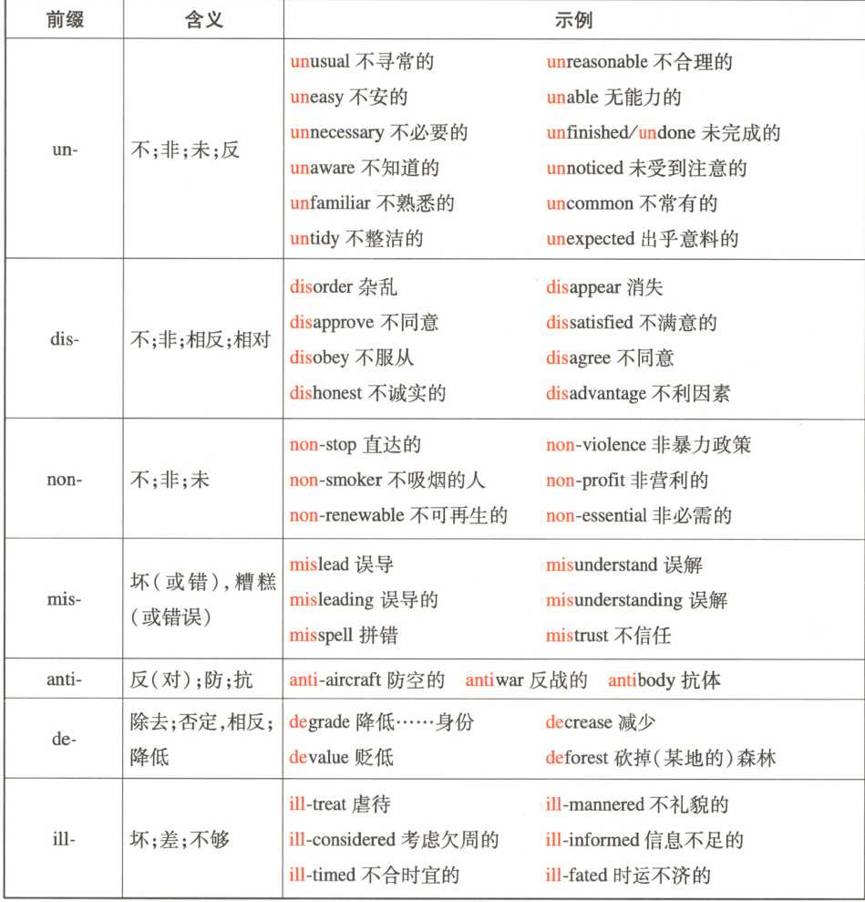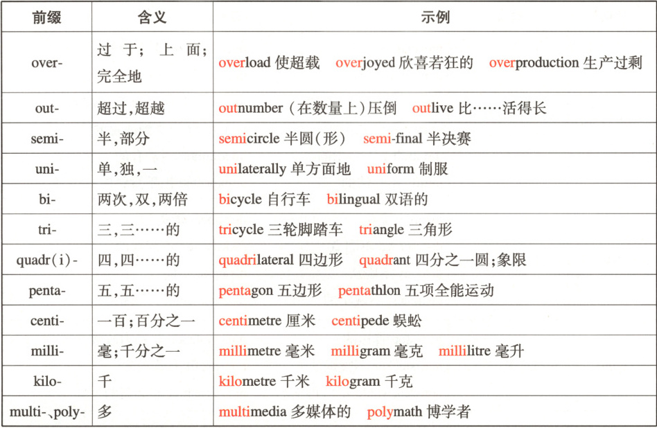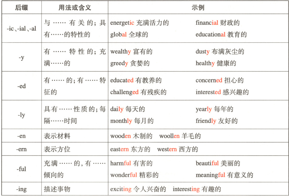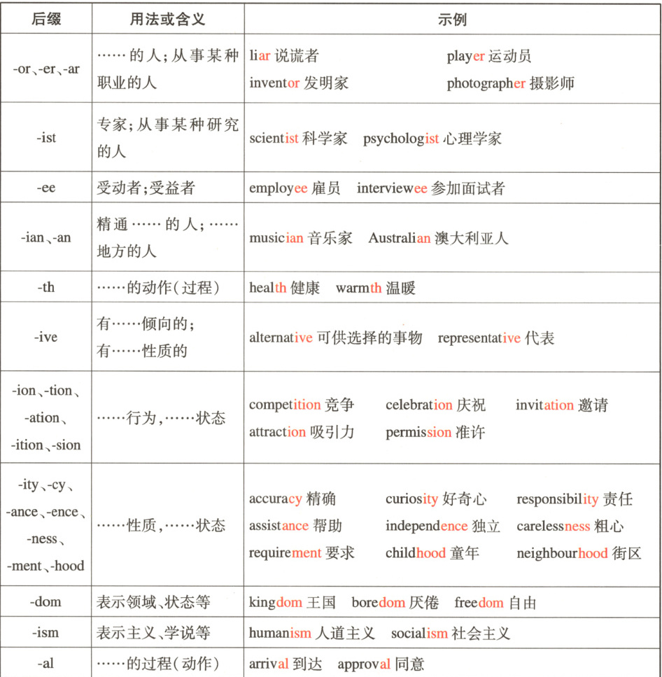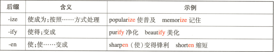 在一个单词前面或后面加一个词缀构成新词的方法称为派生法。派生法亦称词缀法或缀合法,这是构词法中最活跃的一种,大约有三分之二的英语单词是用这种方法构成的。在由派生法构成的派生词中,词根决定词的根本意义,前缀常改变词义,后缀常改变词性。