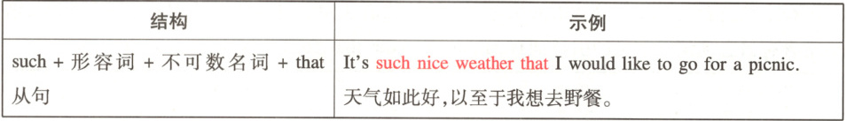 such...that...引导结果状语从句时意为“如此……以至于……”,常见结构如下: