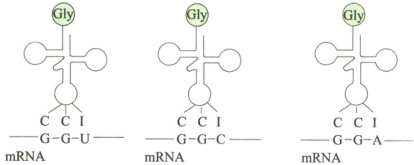 例2(全国Ⅲ卷)细胞内有些tRNA分子的反密码子中含有稀有碱基数次黄嘌呤(I)。含有I的反密码子在与mRNA中的密码子互补配对时,存在如图所示的配对方式(Gly表示甘氨酸)。下列说法错误的是 ()