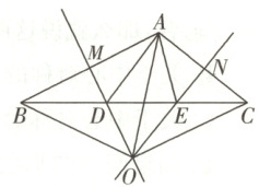 OM与边AC的垂直平分线ON交于点O,这两条垂直平分线