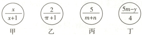 1. (秦皇岛期末)如图,甲、乙、丙、丁四人手中各有一个圆形卡片,则卡片中的式子是分式的有( )