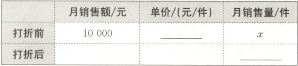 (2)示例:选择方法一.设按原价销售这种服装的月销售量为$x$件.$\frac{10000}{x} × 0.85 × (x + 25) = 10000 + 2750$,解得$x = 50$,经检验,$x = 50$是原分式方程的解.答:按原价销售这种服装的月销售量为$50$件.