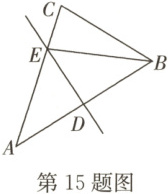 15. 如图,在$\triangle ABC$中,$\angle A = 40^{\circ}$,$\angle C = 70^{\circ}$,$AB$的垂直平分线分别交$AB$,$AC$于点$D$,$E$,连接$BE$,则$\angle EBC$的大小为________.