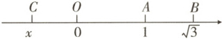 17. (8分)如图,数轴上从左至右依次有$C$,$O$,$A$,$B$四个点,分别对应的数字为$x$,$0$,$1$和$\sqrt{3}$,且$AB = CO$.
