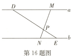 16. 如图,直线$a// b$,点$M$,$N$分别为直线$a$和直线$b$上的点,连接$MN$,$\angle DMN = 70^{\circ}$,点$P$是线段$MN$上一动点,直线$DE$始终经过点$P$,且与直线$a$,$b$分别交于点$D$,$E$.
