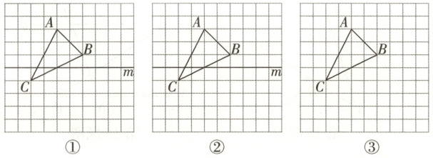 19. (9分)如图①,网格中的每个小正方形的边长为$1$,$\triangle ABC$为格点三角形(点$A$,$B$,$C$在小正方形的格点上),直线$m$经过小正方形的格点.