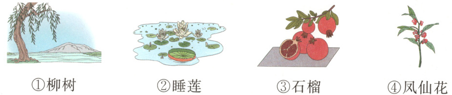 【解析】本题考查学生运用课内外知识的能力。根据课文内容可知,豌豆妈妈传播种子的方法是让豆荚晒在太阳底下,然后通过豆荚爆裂弹射的方式传播种子。结合课外资料可知,④中的凤仙花与豌豆相似,都通过弹射的方式传播种子;①中的柳树借助风力传播种子;②中的睡莲借助水流传播种子;③中的石榴依靠动物传播种子。故选择④。