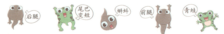 【解析】本题考查学生理解课文内容的能力。结合课文中对小蝌蚪成长过程的描写进行排序即可。由课文相关内容可知小蝌蚪在变成青蛙的过程中,先长出后腿,再长出前腿,然后尾巴变短并逐渐消失,最终长成青蛙。