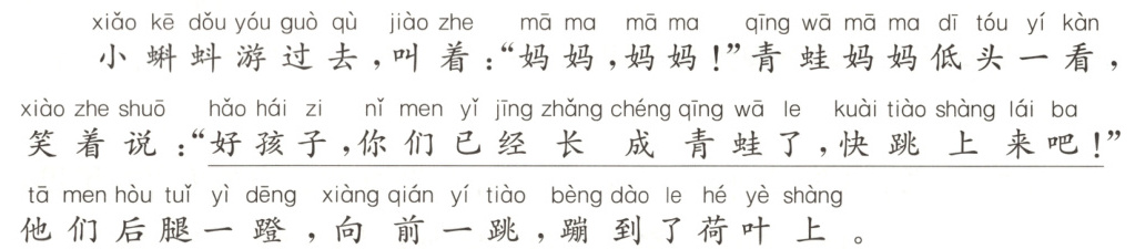 【解析】本题考查学生理解语句的能力。结合上下文可知这是青蛙妈妈看到自己孩子长大后所说的话,因此应用高兴的语气来读。