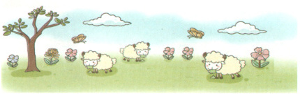 小羊在悠(yōu)闲地吃着草,左边有一棵
