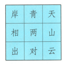 十、新考法 九宫格找诗句 右图中包含着一句描写山川的诗句,请写下来。
