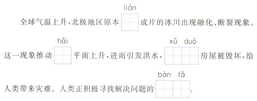 【解析】本题考查学生根据拼音书写字词的能力。需在熟练掌握本课会写字的基础上完成本题。注意“办法”的“办”不要写成“为”。