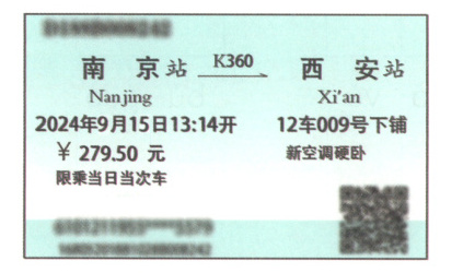 【解析】本题考查学生从图片中提取信息的能力。从车票箭头处可知车次是K360。