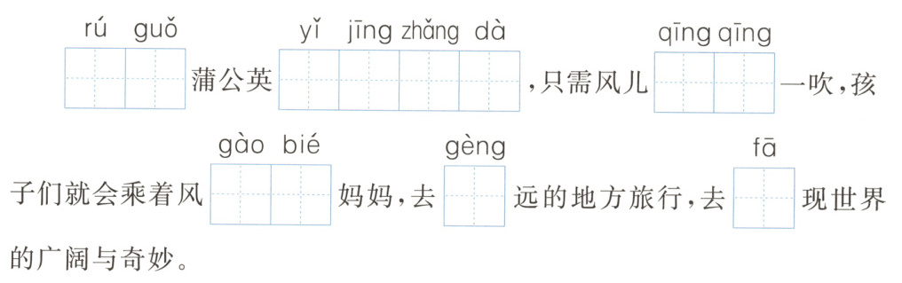 二、蒲公英妈妈有办法。读一读,根据拼音写字词。