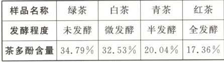 (填“纯净物”或“混合物”)。茶叶中的茶多酚因发酵程度不同含量也不同,下表是四类茶叶中的茶多酚含量,茶多酚含量最高的是绿