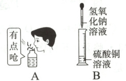 (1)用手在瓶口轻轻扇动,使极少量气体飘进鼻孔;(2)胶头滴管伸入量筒内;(3)ABC