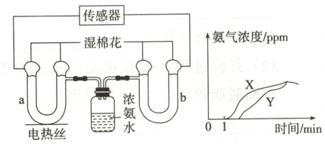 10. 某同学为了探究微粒性质,按图示进行实验,并借助传感设备测得 U 形管 a、b 中氨气浓度随时间变化的曲线(氨气极易溶于水)。下列关于该实验的说法中正确的是()