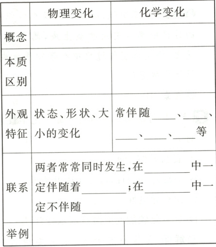 (2)物质不需要发生化学变化就表现出来的性质;颜色;状态;气味;熔点;沸点;密度。