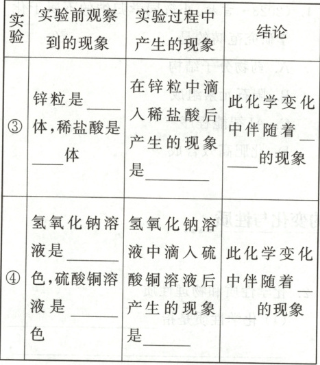 ③ 固;液;锌粒逐渐溶解,产生大量气泡;气体放出