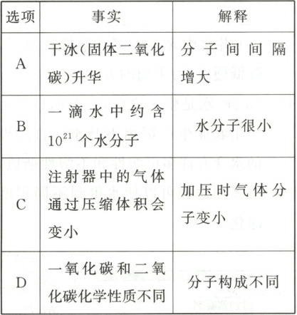 6. (2023·枣庄)“宏观辨识与微观探析”是化学学科核心素养之一。下列事实的微观解释不正确的是(
