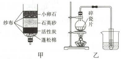 7. 图甲是简易净水装置,图乙是制取蒸馏水的简易装置,下列说法正确的是(