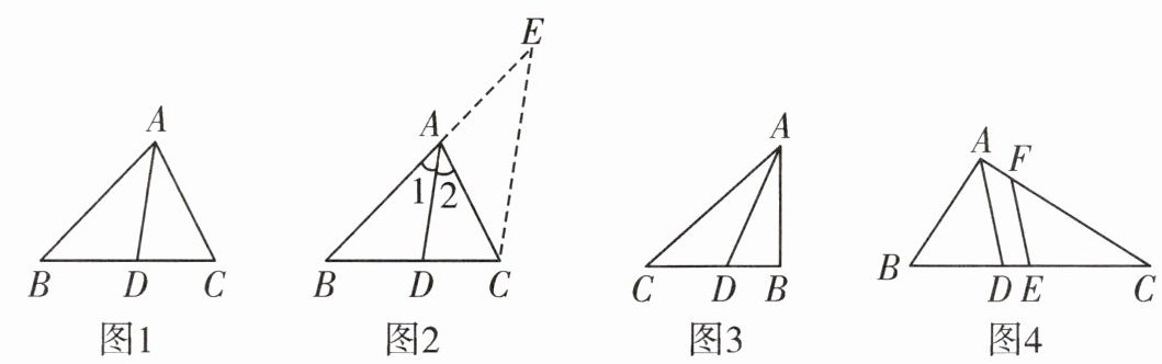 (3)如图4,在$\triangle ABC$中,$E$是$BC$的中点,$AD$是$\angle BAC$的平分线,$EF// AD$交$AC$于点$F$,$AB=7$,$AC=15$,求$AF$长。