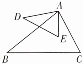 5. 如图,在$\triangle ABC$与$\triangle AED$中,$\frac{AB}{AE} = \frac{BC}{ED}$,要使$\triangle ABC$与$\triangle AED$相似,还需添加一个条件. 这个条件可以是________(只需填一个条件).
