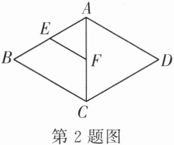 2. 如图,在菱形 $ABCD$ 中,点 $E$ 是 $AB$ 的中点,点 $F$ 是 $AC$ 的中点,连接 $EF$。如果 $EF = 4$,那么菱形 $ABCD$ 的周长为( )