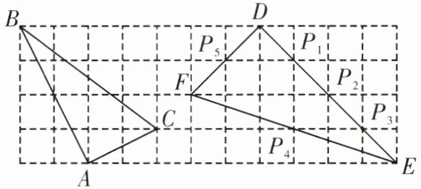 12. 如图,在边长为$1$的小正方形组成的网格中,$\triangle ABC$和$\triangle DEF$的顶点都在格点上,$P_1$,$P_2$,$P_3$,$P_4$,$P_5$是$\triangle DEF$边上的$5$个格点. 请按要求完成下列各题: