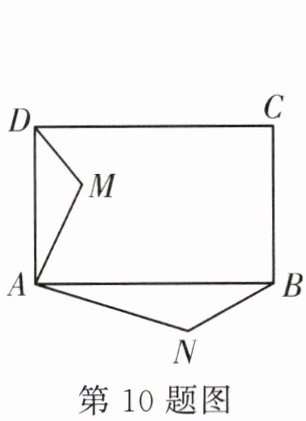 10. 如图,四边形$ABCD$为矩形,$\frac{AD}{AB} = \frac{AM}{AN} = \frac{DM}{BN}$,则$\angle MAN$为________度.
