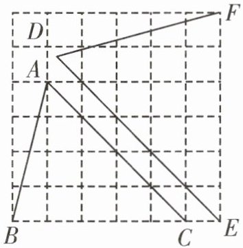 10. 在如图的正方形网格中,每个小正方形的边长均为$1$,$A$,$B$,$C$,$E$,$F$五点均在格点上. 若$\triangle ABC \backsim \triangle DFE$,则$\triangle DFE$的面积是______.