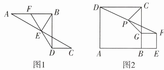 问题延伸:如图 2,在正方形 $ABCD$ 和正方形 $BEFG$ 中,点 $A$,$B$,$E$ 在同一条直线上,点 $G$ 在 $BC$ 上,$P$ 是线段 $DF$ 的中点,连接 $PC$,$PG$.