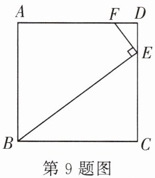 9. 如图,$E$,$F$ 两点分别在正方形 $ABCD$ 的边 $CD$,$AD$ 上,且 $EF$ 垂直于 $BE$. 若 $AB = 8$,$BE = 10$,则 $\triangle DEF$ 的周长为( )