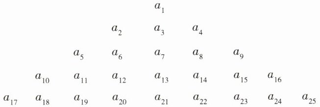 15. 在等差数列$\{ a_{n}\}$中,$a_{2}+a_{4}=16$,$a_{1}+1$,$a_{2}+1$,$a_{4}+1$成等比数列,把各项按如图所示排列.则从上到下第$10$行,从左到右的第$11$个数值为______.