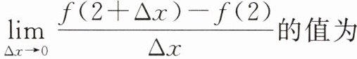 4. (2024·河南驻马店高二期末)定义在 $ \mathbf{R} $ 上的函数 $ y = f(x) $ 在区间 $[2, 2 + \Delta x](\Delta x > 0)$ 内的平均变化率为 $ \frac{\Delta y}{\Delta x} = (\Delta x)^2 + 2\Delta x + 1 $,其中 $ \Delta y = f(2 + \Delta x) - f(2) $,则函数 $ f(x) $ 在 $ x = 2 $ 处的导数 $ f'(2) $ 为( )