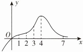 8. (多选)(2025·长沙长郡中学高二月考)已知函数 $ y = f(x) $ 的图象如图所示,则下列关于函数 $ y = f(x) $ 在区间 $[1, 2]$,$[2, 3]$,$[3, 4]$,$[4, 7]$ 上的平均变化率的说法,正确的是( )