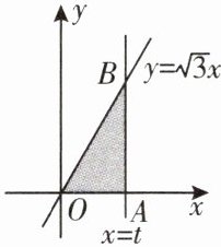 12. 如图所示,在平面直角坐标系 $ xOy $ 中,直线 $ y = \sqrt{3}x $,$ y = 0 $,$ x = t(t > 0) $ 围成的 $ \triangle OAB $ 的面积为 $ S(t) $,则 $ S(t) $ 在 $ t = 2 $ 处的瞬时变化率是______。