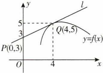 11. 如图所示,已知 $y = f(x)$ 是可导函数,直线 $l$ 是曲线 $y = f(x)$ 在 $x = 4$ 处的切线,令 $g(x)=\frac{f(x)}{x}$,则 $g'(4)=$______。