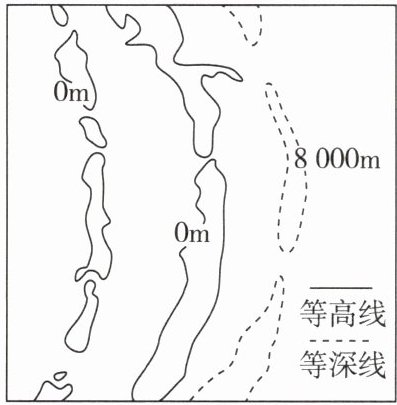 (2025·温州高二上期末)马里亚纳群岛(位于菲律宾板块与太平洋板块之间),是由西太平洋一系列火山和上升珊瑚构造组成的,半数岛屿有常住人口。如图所示为马里亚纳群岛及其周边局部区域图。据此完成第10、11题。