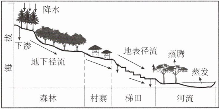 13. B 【解析】梯田改变了地表坡度,降低了水流速度,有利于减少水土流失,B正确;梯田对山谷风、冷空气基本没有影响,A、D错误;梯田与建水窖储存雨水关系不大,C错误。