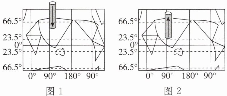 10. 图1、图2中被气压柱切断的气压带分别是 ( )