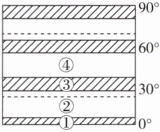 如图所示中①②③④分别代表北半球气压带或风带。据此完成第1—3题。