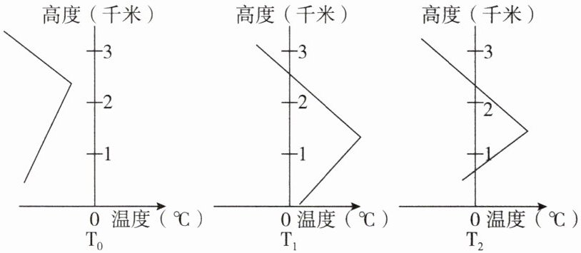 6. 如图所示,T₀、T₁、T₂为湖北省某地此次天气过程中不同时间的大气温度垂直变化图,按时间先后顺序排列正确的是( )