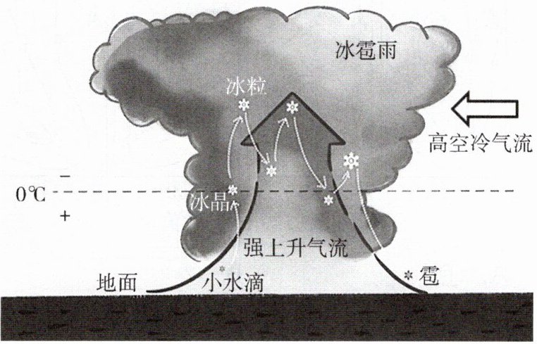 (2024·杭州高二期中)2024年4月27日下午,广州市遭遇冰雹、暴雨、龙卷风天气。冰雹是强对流天气下发生的一种固态降水。广州冰雹主要出现在2—10月,且春季发生的概率高于夏季。如图所示为冰雹形成示意图。据此完成第7、8题。
