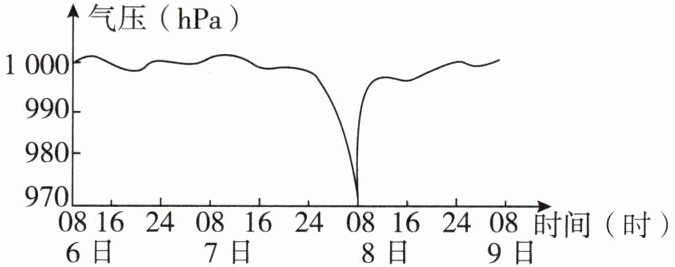 如图所示为某年8月6—9日台湾省花莲县气压变化示意图。据此完成第1、2题。