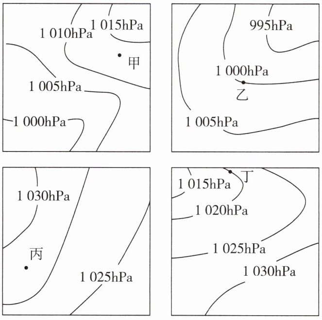 5. 关于甲、乙两地附近天气系统,下列示意图中正确的是( )