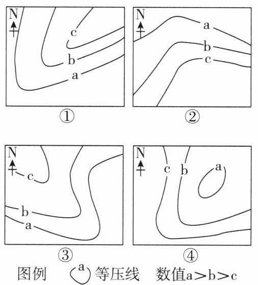13.A【解析】据上题分析可知,甲地位于冷锋锋面附近,图①为锋面气旋的西侧低压槽,为冷锋,A正确;图②为气旋的北部,且等压线稀疏,没有锋面形成,B错误;图③为锋面气旋的东侧低压槽,为暖锋,C错误;图④为反气旋,D错误。