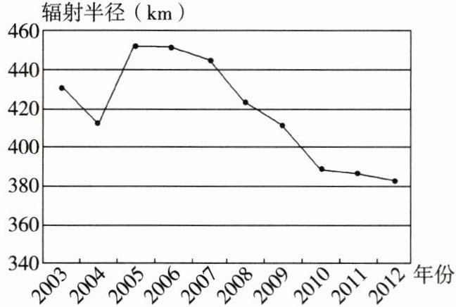 13. 引起2005—2012年上海市辐射半径变化的主要原因可能是( )